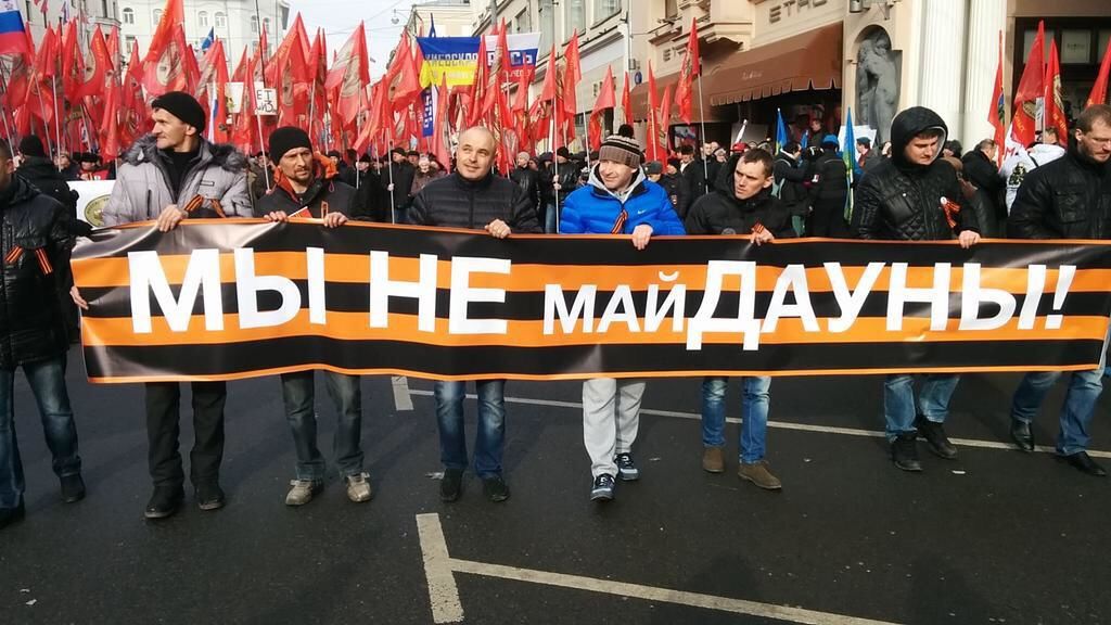 “MaiDOWNS” — a tactless reference to the Ukrainian revolution and a person with Down syndrome — is a bit of slang that long ago took root among pro-Kremlin Internet trolls. If any foreign readers were unaware, the term “Down” as used in Russia means “absolute idiot” or “imbecile” and carries a very negative connotation.