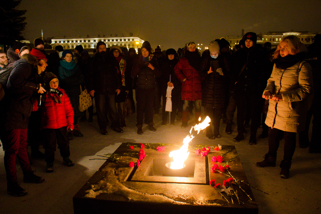 Marchers gathered around the Eternal Flame on the Field of Mars. Photo courtesy of Sergey Chernov
