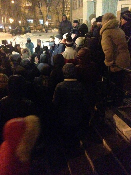 Ultimately, the villagers came to the public hearing, the only official event at which authorities had decided to listen to the voice of the people. However, the police, led by the police chief of Lyubertsy, were waiting for Tomilino residents at Prep School No. 18, where the hearings had been scheduled. The school’s large auditorium was unable to accommodate all comers. (According to the pressure group, around a thousand people came.) People stood in the hallways, and around a hundred people were left outside, since the police had barricaded the door. As a result, the people outside the school held a spontaneous protest rally at which they chanted slogans against unification with Lyubertsy.