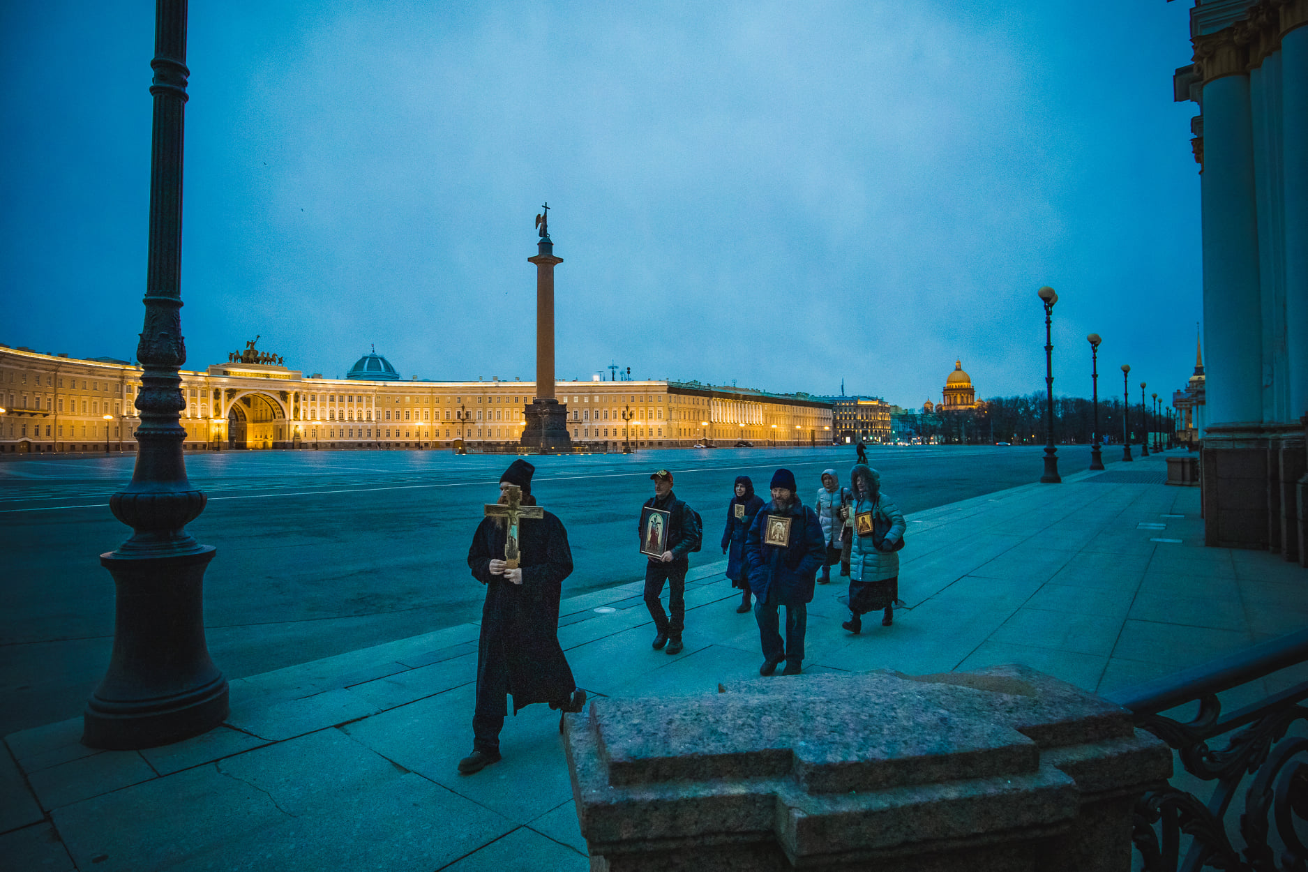 March 31, 2020. A religious procession on Petersburg’s Palace Square, empty due to the coronavirus quarantine.