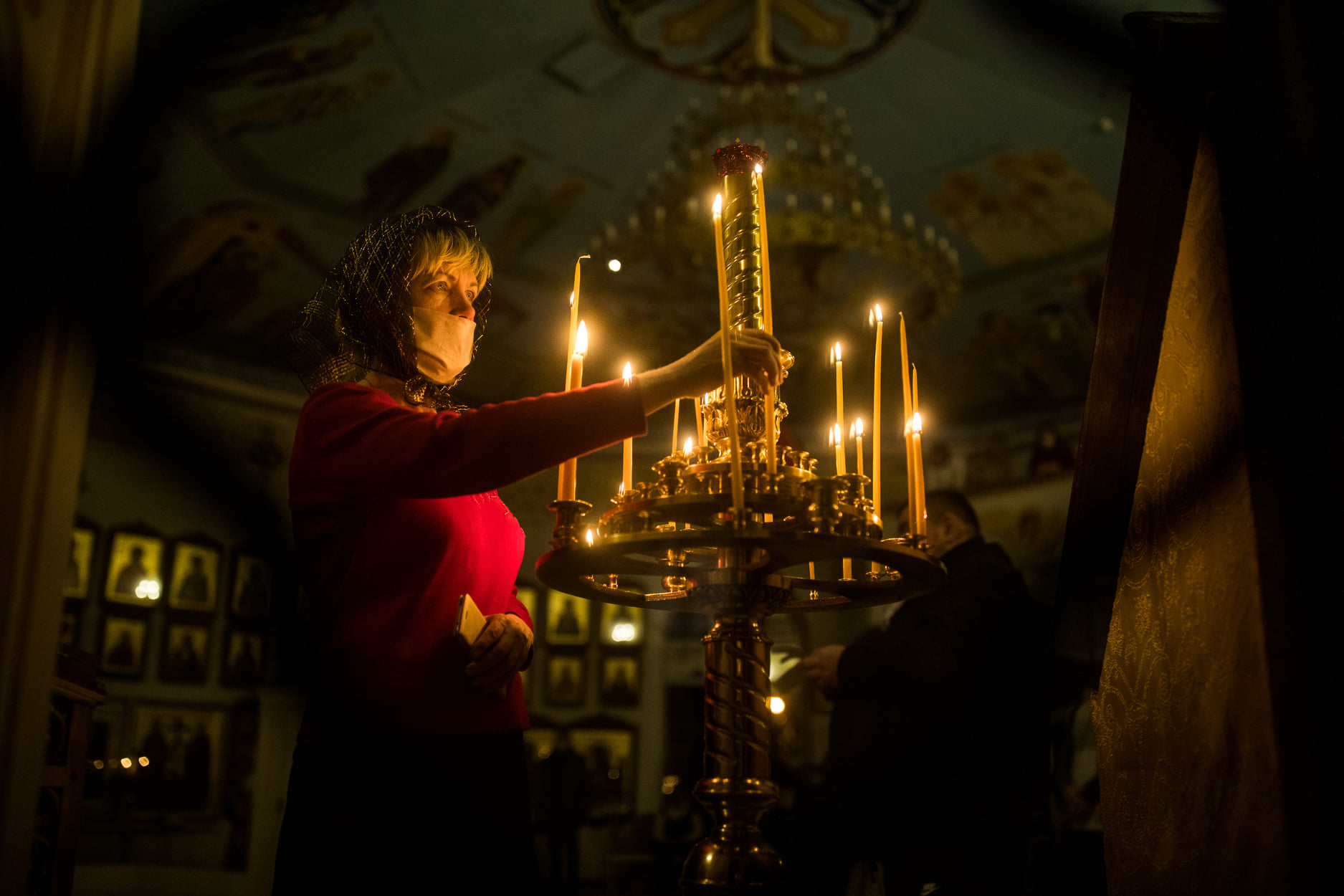 April 18, 2020. Easter is celebrated at the Church of the Savior of the Holy Image in Vsevolozhsk (outside Petersburg) despite the ban imposed on such gatherings due to the coronavirus quarantine.