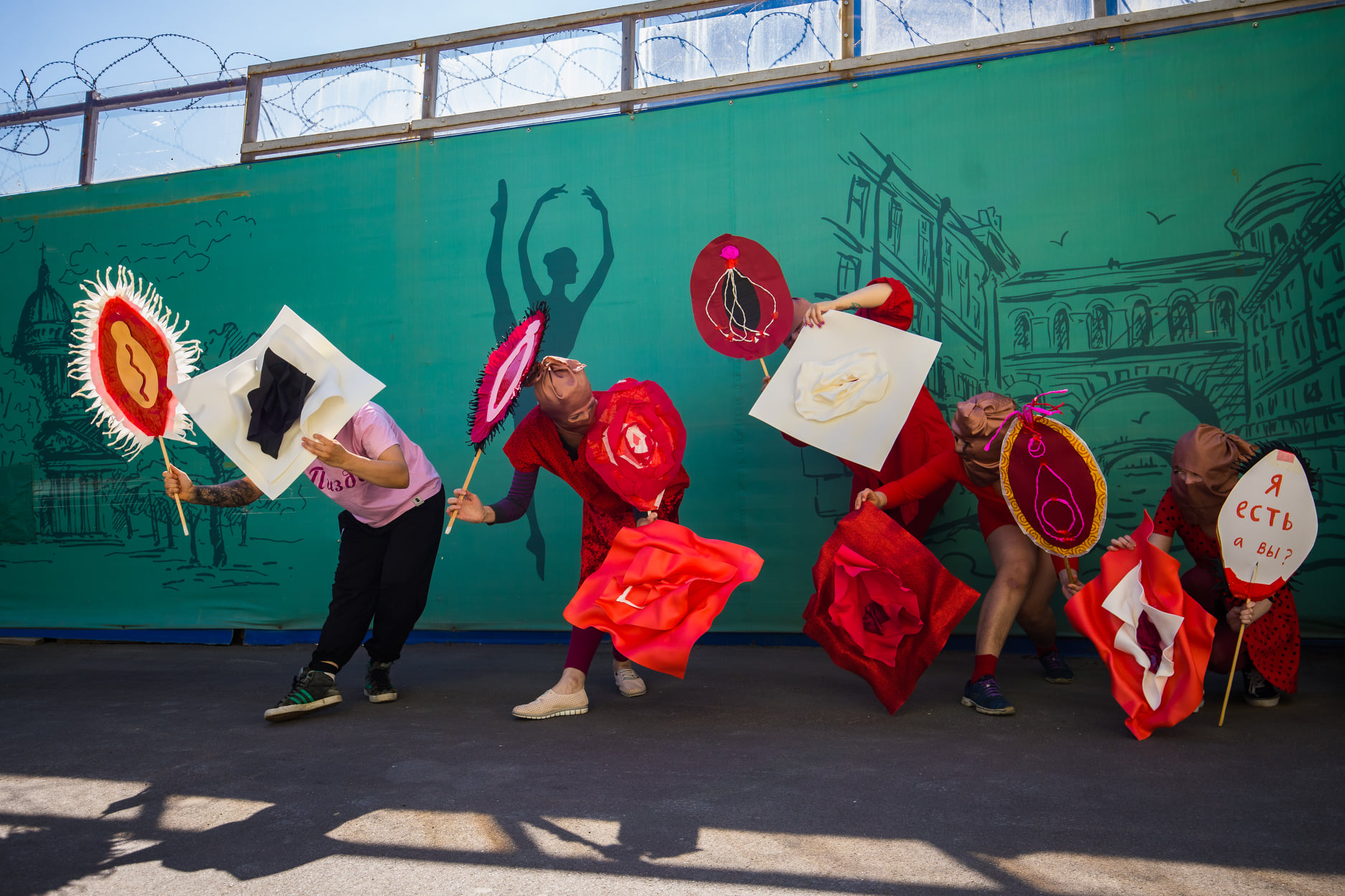 July 17, 2020. A scene from the protest action Vulva Ballet, near the Mariinsky Theater in Petersburg, in support of the artist Yulia Tsvetkova