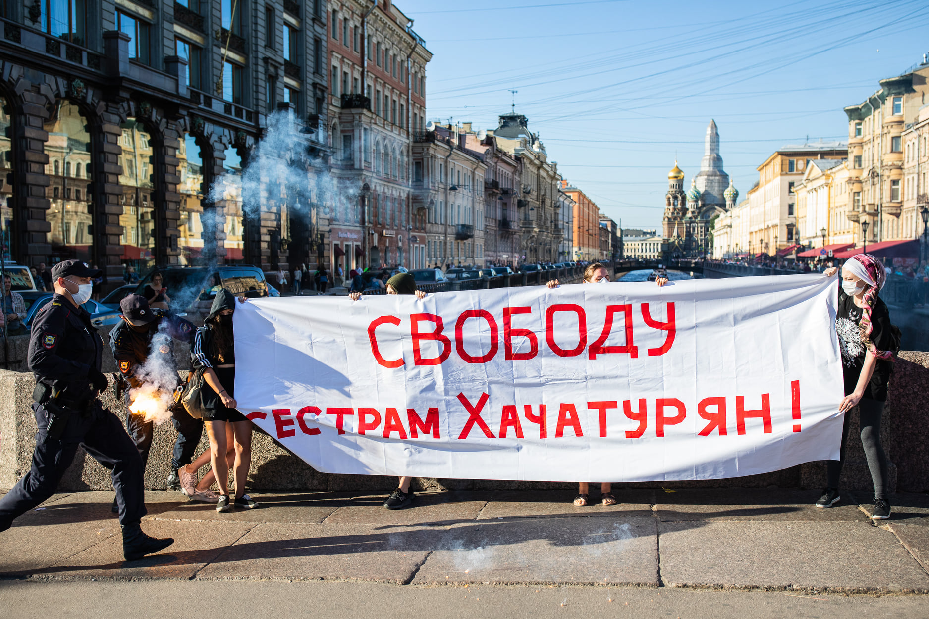 August 9, 2020. A protest in support of the Khachaturian sisters on Nevsky Prospekt in Petersburg.