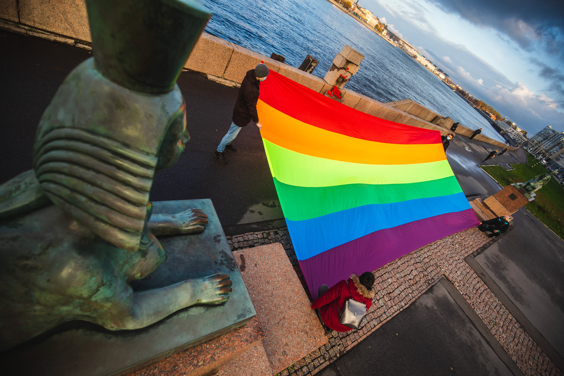 October 30, 2020. A protest action in memory of the LGBT victims of Stalin’s Great Terror on the Voskresenskaya Embankment in Petersburg.