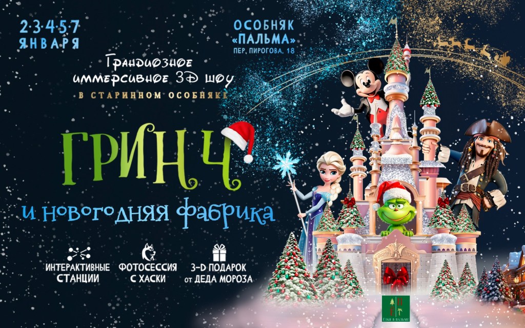 New Year is a magical time of miracles and fairy tales! StageMagic Agency has produced a colossal immersive 3D show, The Grinch and the New Year’s Factory, that will entertain children of all ages and even adults! The show can be seen only from January 2 to 7 in the old Palma Mansion!