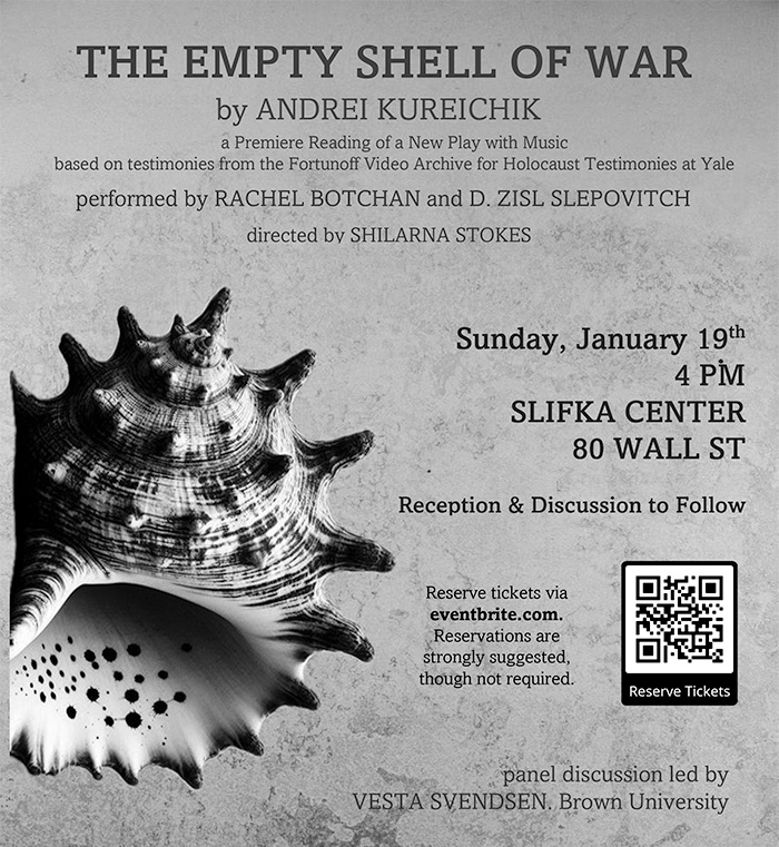 The Fortunoff Video Archive for Holocaust Testimonies, and Yale’s Program in Theater, Dance, and Performance Studies, invites you to the premiere reading of Andrei Kureichik’s new play The Empty Shell of War.