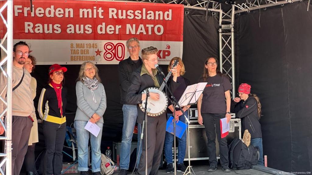 German ultra-leftists rally for “peace with Russia” and Germany’s exit from NATO, 9 May 2025. Photo: Roman Goncharenko/Deutsche Welle