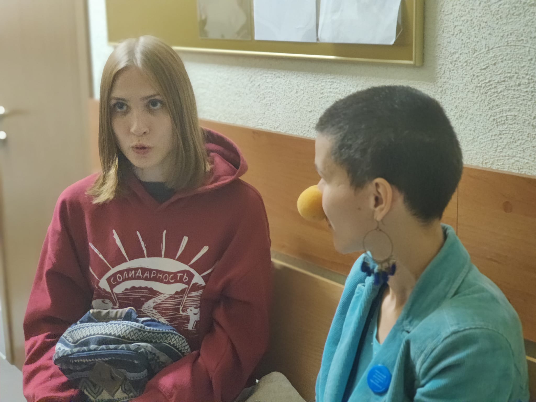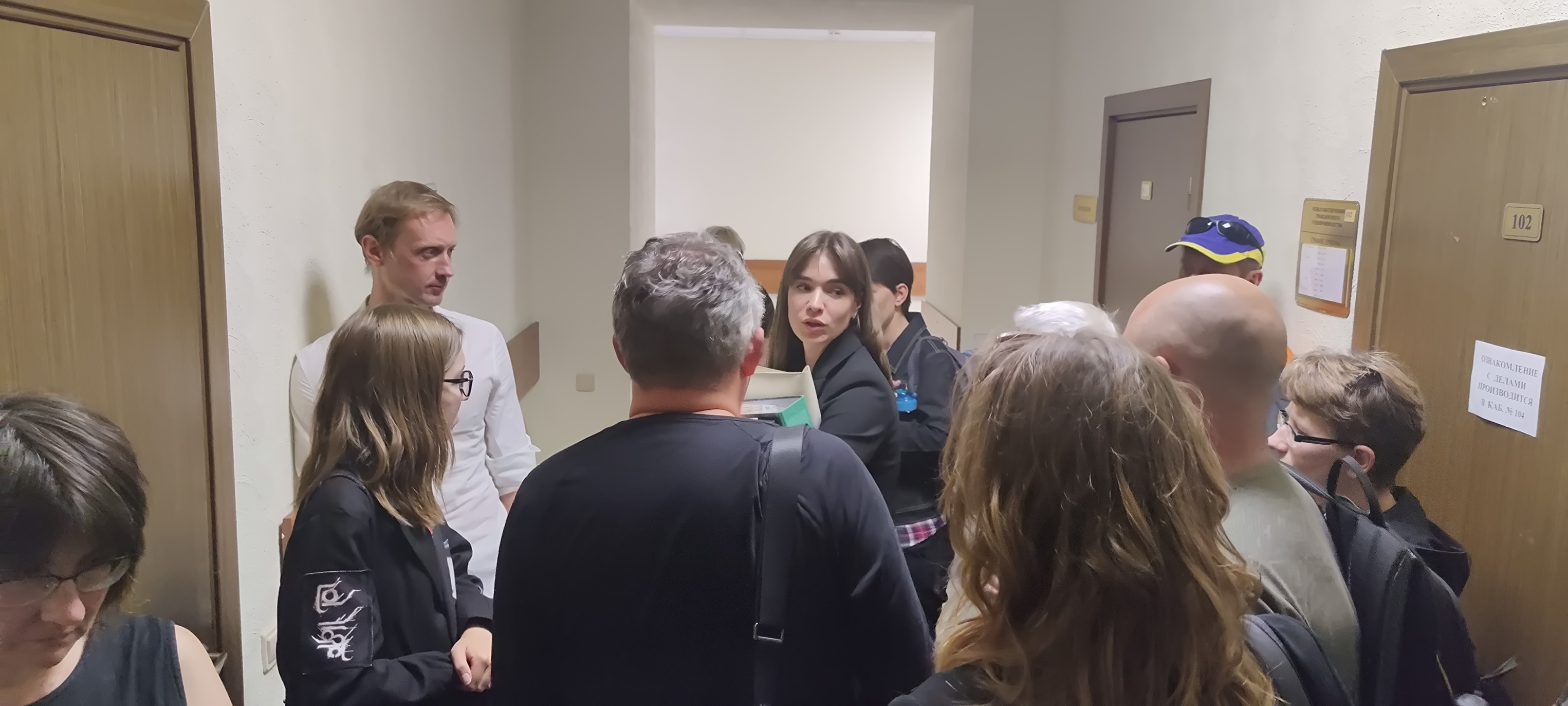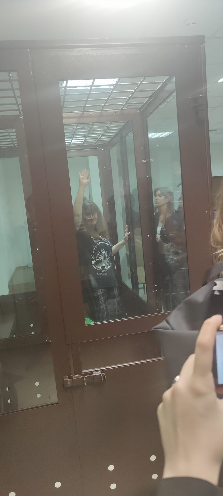 Sonya, the girlfriend of Sasha Skochilenko, came to today’s hearing in the trial of anti-war activist Olga Borisovna Smirnova. Sonya wore a sweatshirt embossed with the word “SOLIDARITY.” It was quite nice to see that there is reciprocity among the support groups of political prisoners.