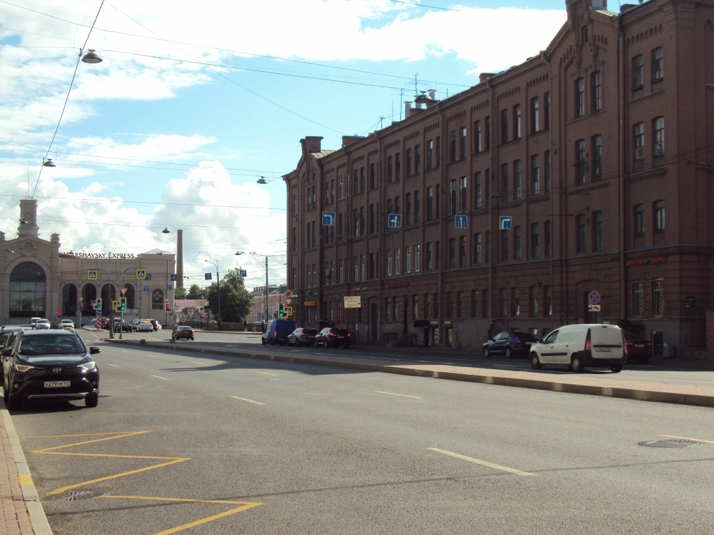 Pokrovsky Square (Church of the Intercession Square) aka Turgenev Square, in central PetersburgIzmailovsky Prospect in Petersburg. The former Warsaw Station, now a shopping and entertainment center, is in the background.The end of Izmailovsky Prospect, with a clearer view of the former Warsaw Station. A statue of Lenin once stood in front of it.