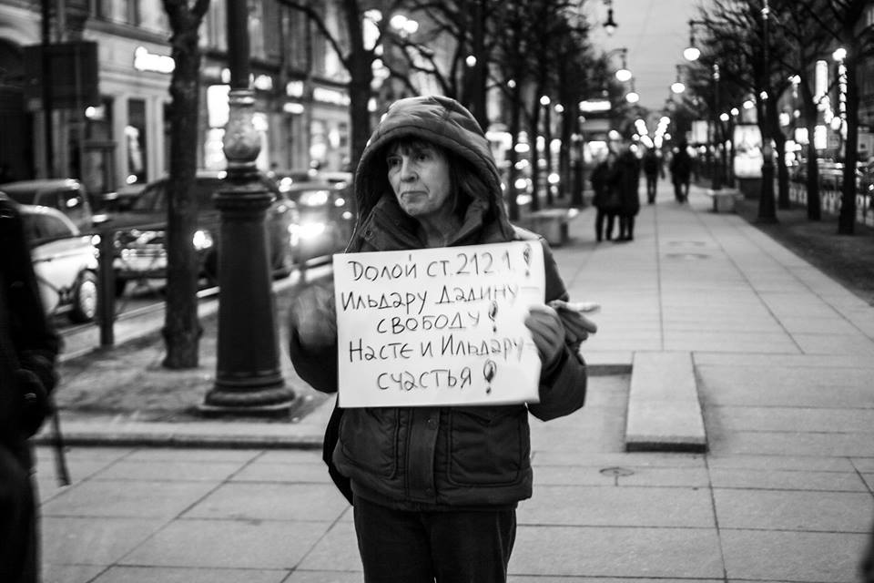 She went on pickets in support of Ukrainian and Crimean Tatar political prisoners, and the defendants in the Moscow Case and the Network Case, against the construction of a landfill in Shiyes, and against plans to build a church on a city square in Yekaterinburg.
