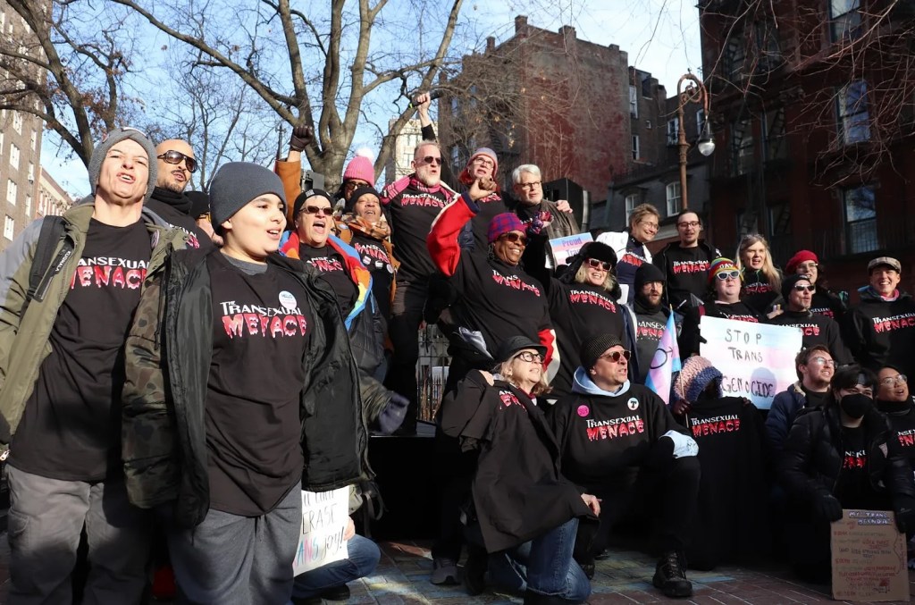 The Transexual Menace, whose blood-stained logo is a campy, tongue-in-cheek nod to “The Rocky Horror Picture Show,” cut its teeth mobilizing against trans exclusion from queer spaces and causes in the 1990s. Where some gay and lesbian organizations sought to align themselves with more white, heteronormative, upper class sensibilities, the Transexual Menaces — “Stone Butch Blues” author Leslie Feinberg among them — refused to center respectability politics in their actions, Norris said.
