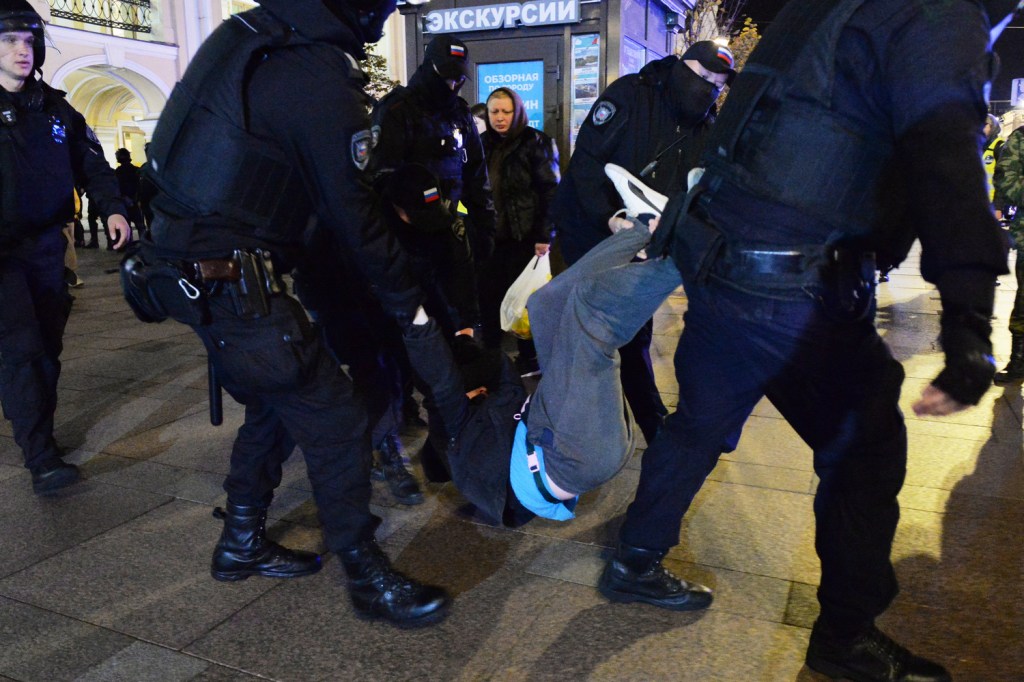 Riot police vigorously detained protesters, beat them with batons, dragged them on the ground, and put them on their knees. According to OVD Info, at least 444 people were detained in St. Petersburg.