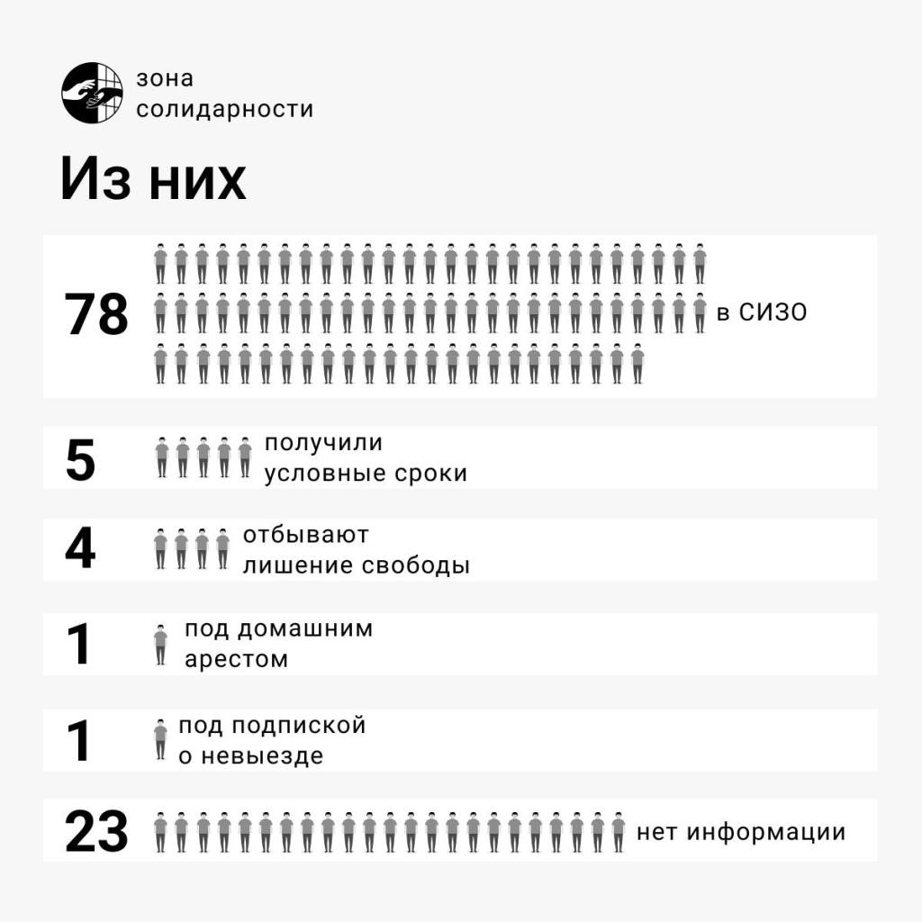 We are currently supporting nineteen political prisoners. In almost all cases we pay their defense lawyers and organize fundraisers to this end, and in many cases we are also involved in arranging for parcels and care packages to be sent to the prisoners and replenishing their personal commissary accounts at their detention facilities. We talk publicly about their cases and similar criminal cases. We did a count in September 2023, and at that time there were around three hundred people in Russia facing criminal charges over radical anti-war protests. There was no further info on half of these people: we could not find out whether they were under arrest or wanted by the police.