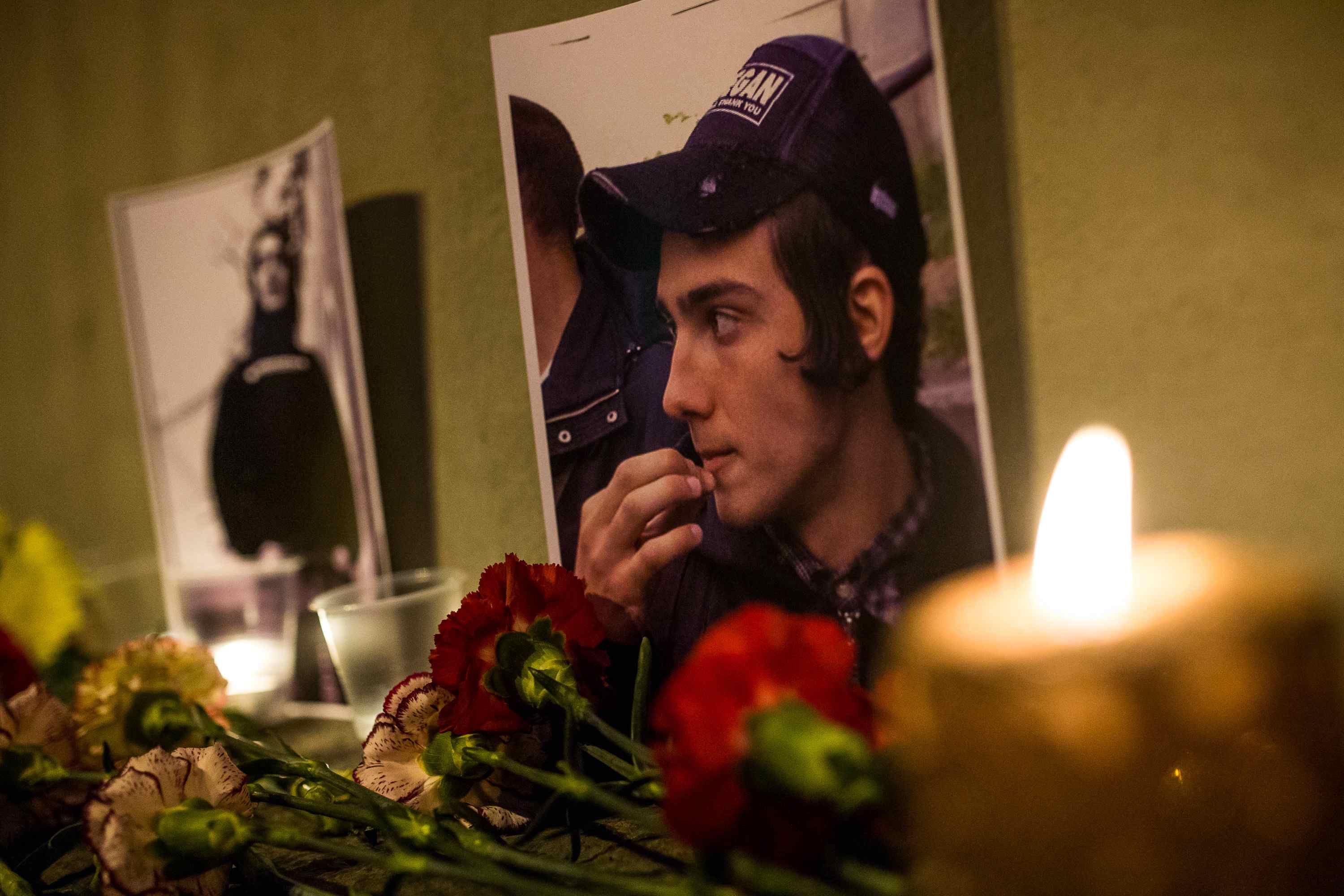 Mourners gathered at the site of Kacharava’s murder on Ligovsky Prospect
