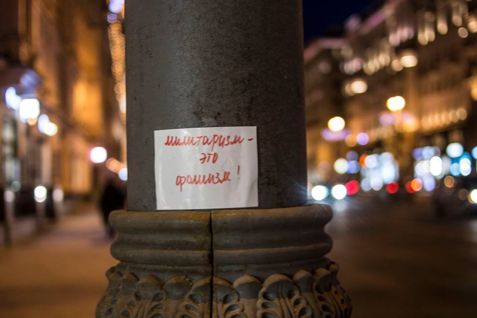 “I was a policeman in the GDR,” said a man in his sixties who held a placard that read “Thank you” in Russian. The policemen asked him to doff his Soviet cap, which sported a red star and a St. George’s ribbon.