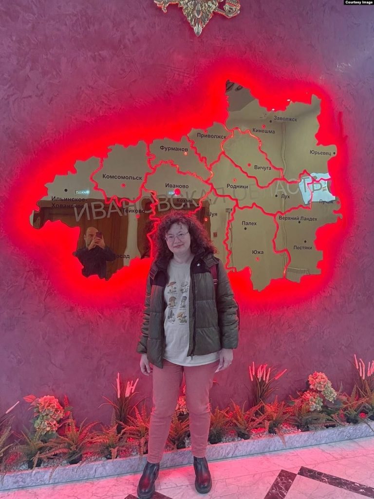 Olga Nazarenko in the lobby of the Ivanovo Regional Office of the Interior Ministry. Photo by Oskar Cherdzhiyev. Courtesy of Radio Svoboda