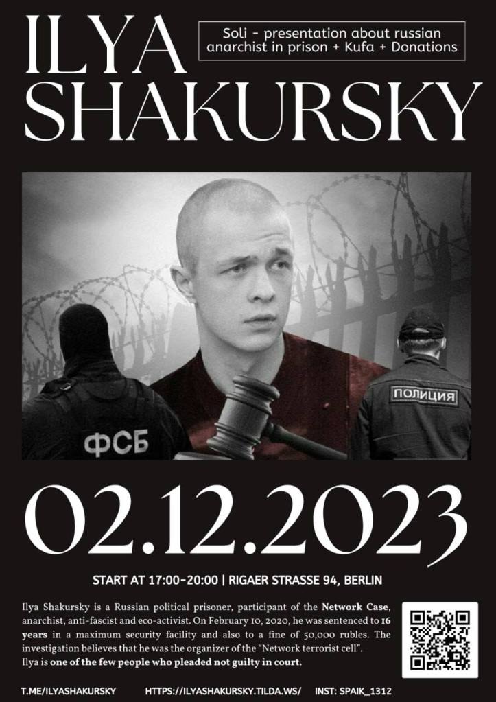 This Saturday, 23 November, at 7 p.m., the last presentation about and fundraiser for Ilya Shakursky will take place at Schwarzmarkt in Hamburg (Kleiner Schäferkamp 46). After the new year, a big update is in store for the project, but in the meantime we look forward to seeing the local public and thank everyone who has supported us this year!