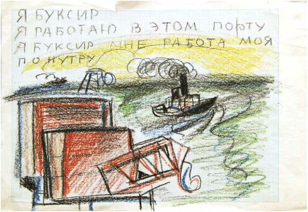 Shalya lived on the third floor on Ordinarnaya. His window overlooked a street with a movie theater nearby. He was always watching passersby from the window, memorizing them, immediately pouring out his impressions on paper, and then tossing these fantastic drawings under the table, where they would intermingle with half-eaten bowls of porridge. He produced his masterpieces amidst this muddle, amidst dirty duds, leftover food, and cigarette butts. Any of these pieces would be the pride of the most prestigious museum. It was his drawing Feast that wound up on the frontispiece of the album The Arefiev Circle (Saint Petersburg: Avangard na Neve, 2002). It is absolutely stunning.