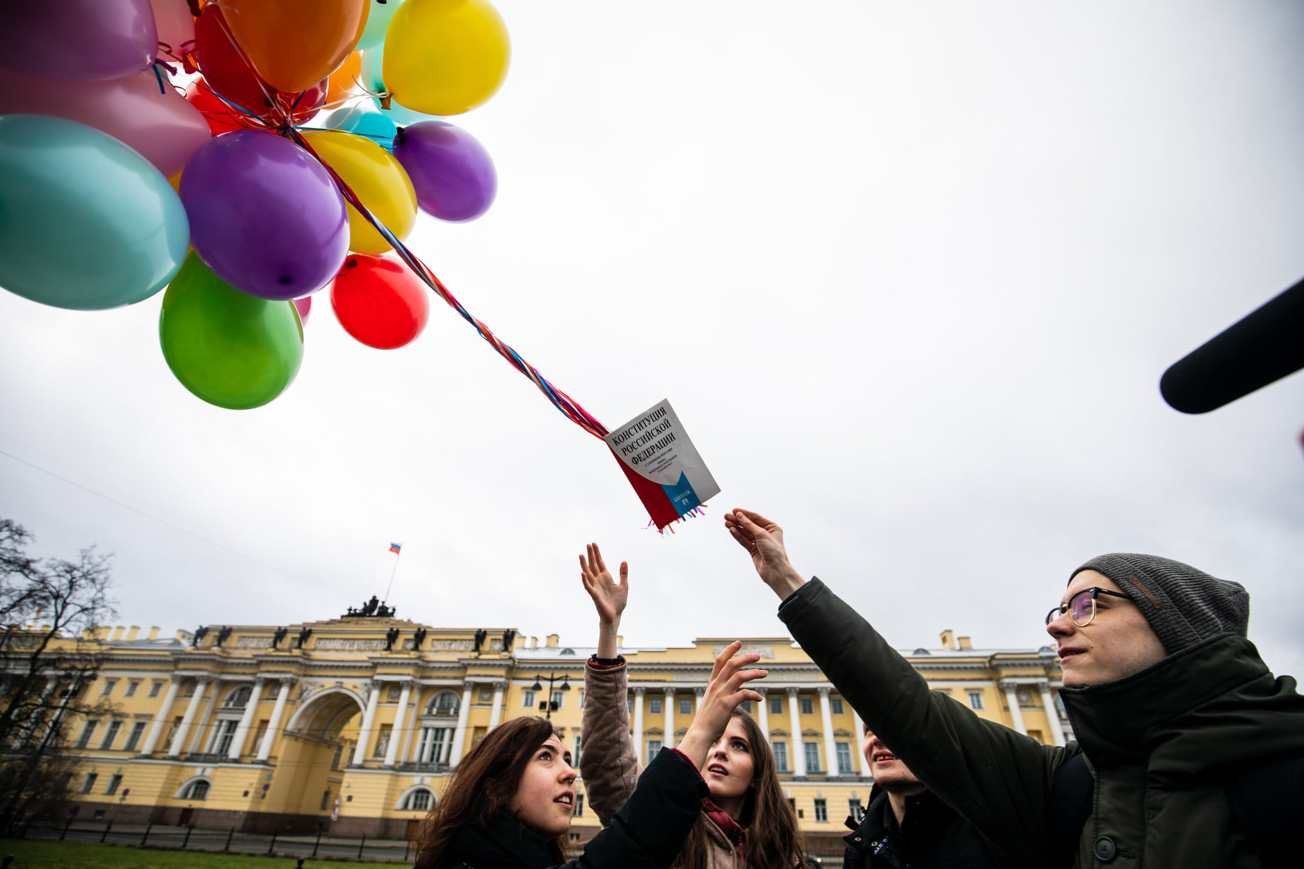 January 19, 2020. Activists of the Vesna Movement say goodbye to the Russia Constitution near the Constitutional Court in Petersburg.
