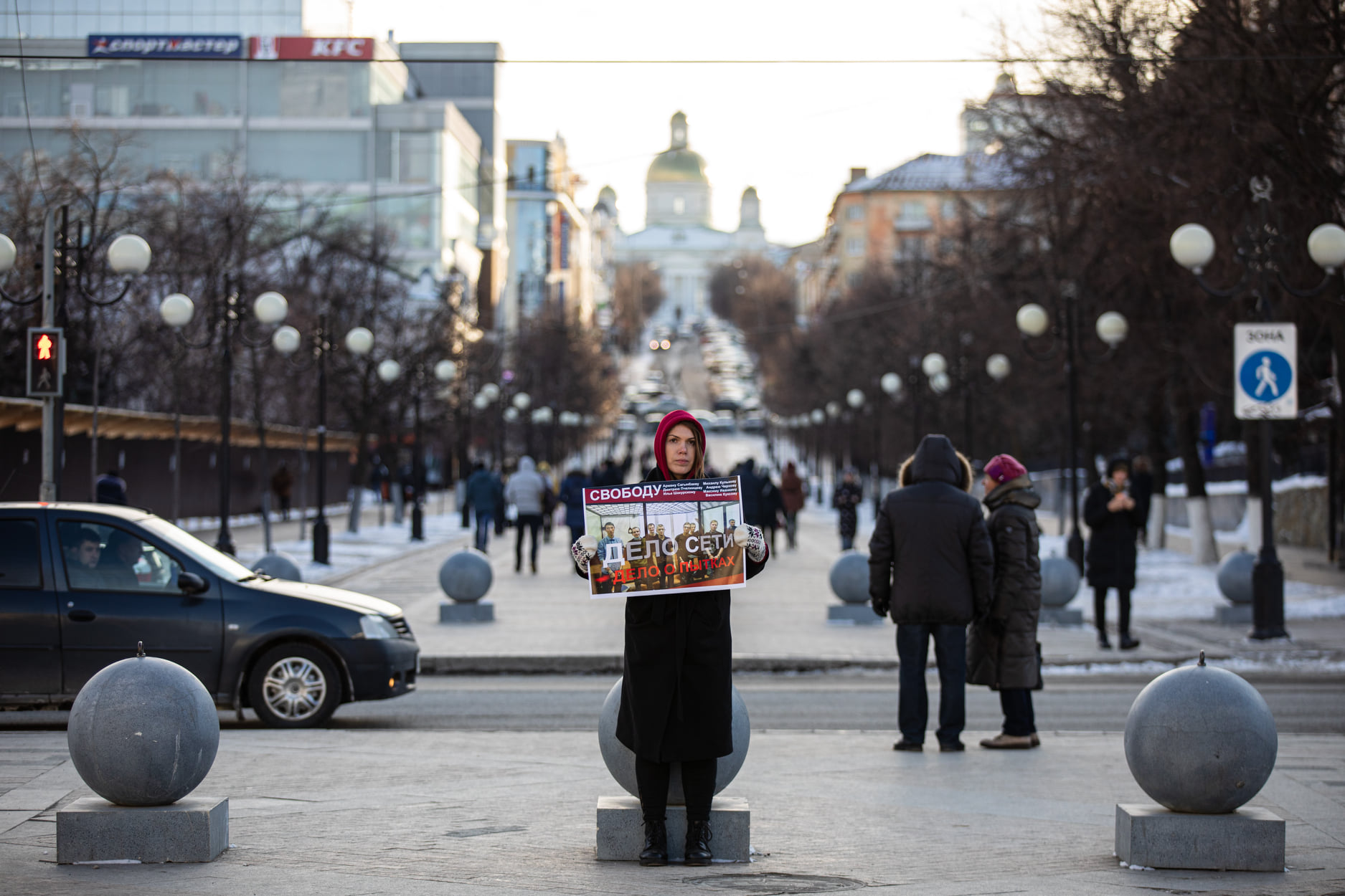 February 9, 2020. A solo picket in Penza before the verdict in the Network Case was announced.