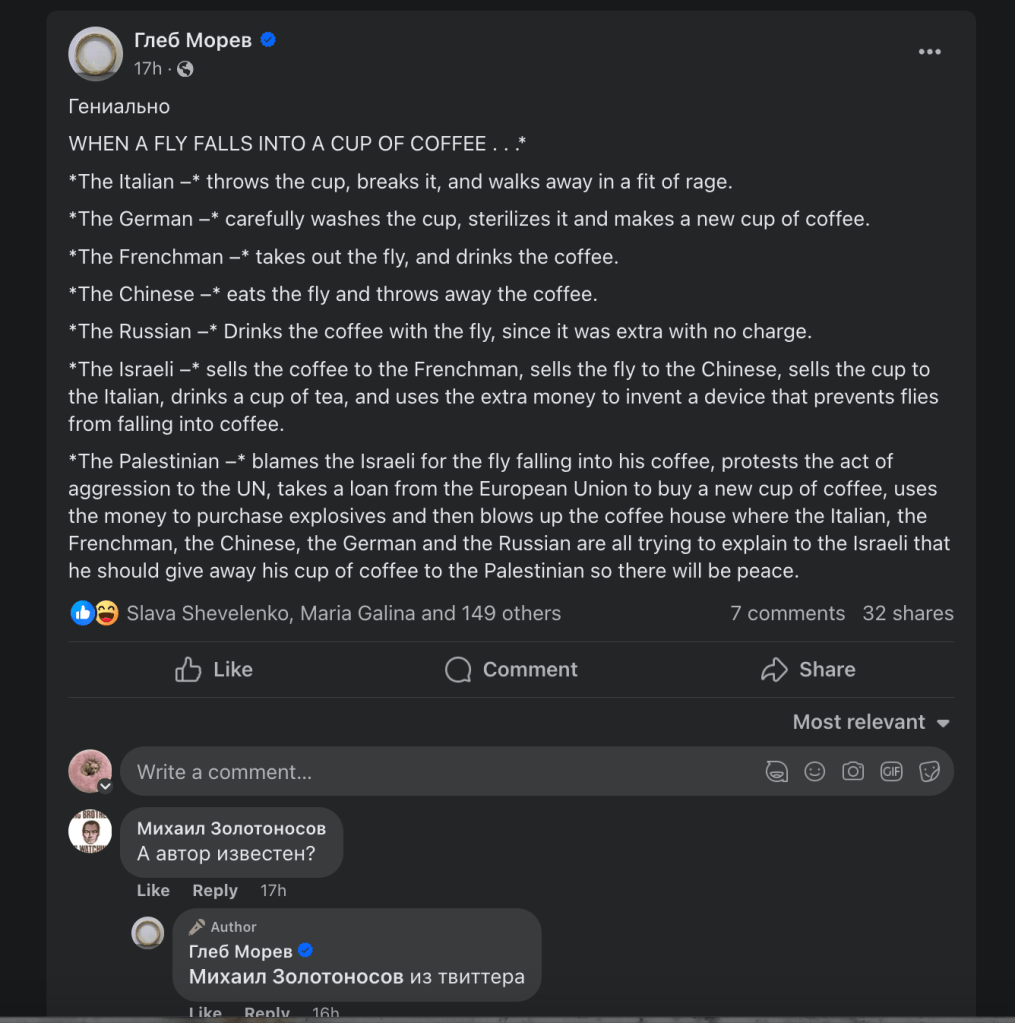 One last thing, about why I decided to react in this way to Akunin’s statement, which are quite congenial to my own thoughts. It seems to me that a respected public figure should always think about the consequences of their words and deeds.