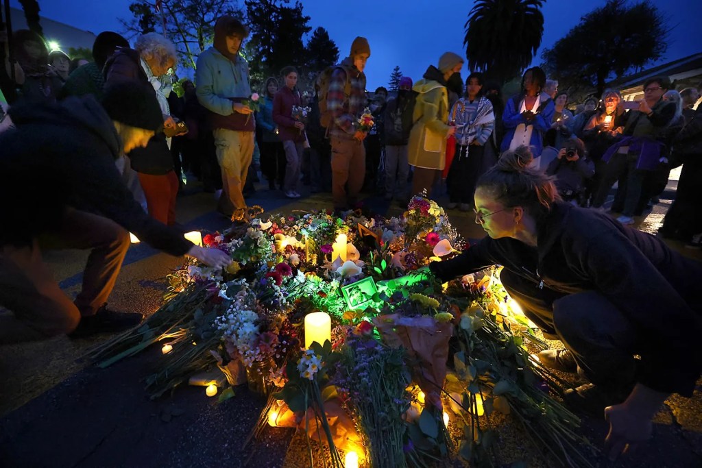 Ritchie’s family, friends and acquaintances quietly poured into the open-air patio of Bike Church Santa Cruz on Sunday, the second day of Black History Month, with many carrying flowers as they embraced one another with tears in their eyes. The smell of incense and burning sage was carried by the crisp winter air as the sun set behind a gray curtain of clouds that covered the more than 300 people that had assembled to collectively process the incident.