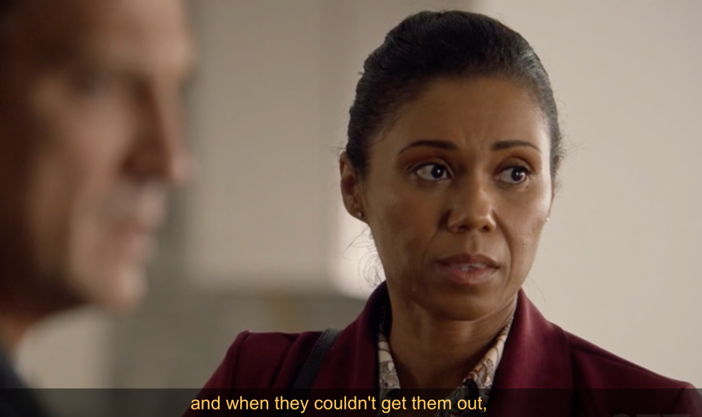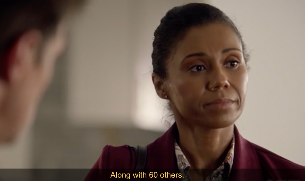 ‘Following a drive during which we learned that Agent Fox is gay and Simone herself is bi, Fox tasked Clark with rifling through screens and screens of tipline calls possibly about the Russian, but “people person” Simone instead sneaked off to talk to locked-up Zeke, her former student, asking if he remembered anything else about the bomber. This led to Zeke sketching a Russian candy bar that the guy munched on, and that in turn — thanks to some Russian musicians that Simone’s dad Cutty sometimes jams with — led Simone to a store. Not waiting for Nolan to catch up, Simone approached and tried to chat up Gurin by herself, but that led to a brief brawl, where the Russian walloped the unarmed trainee hard, and then ran off.’