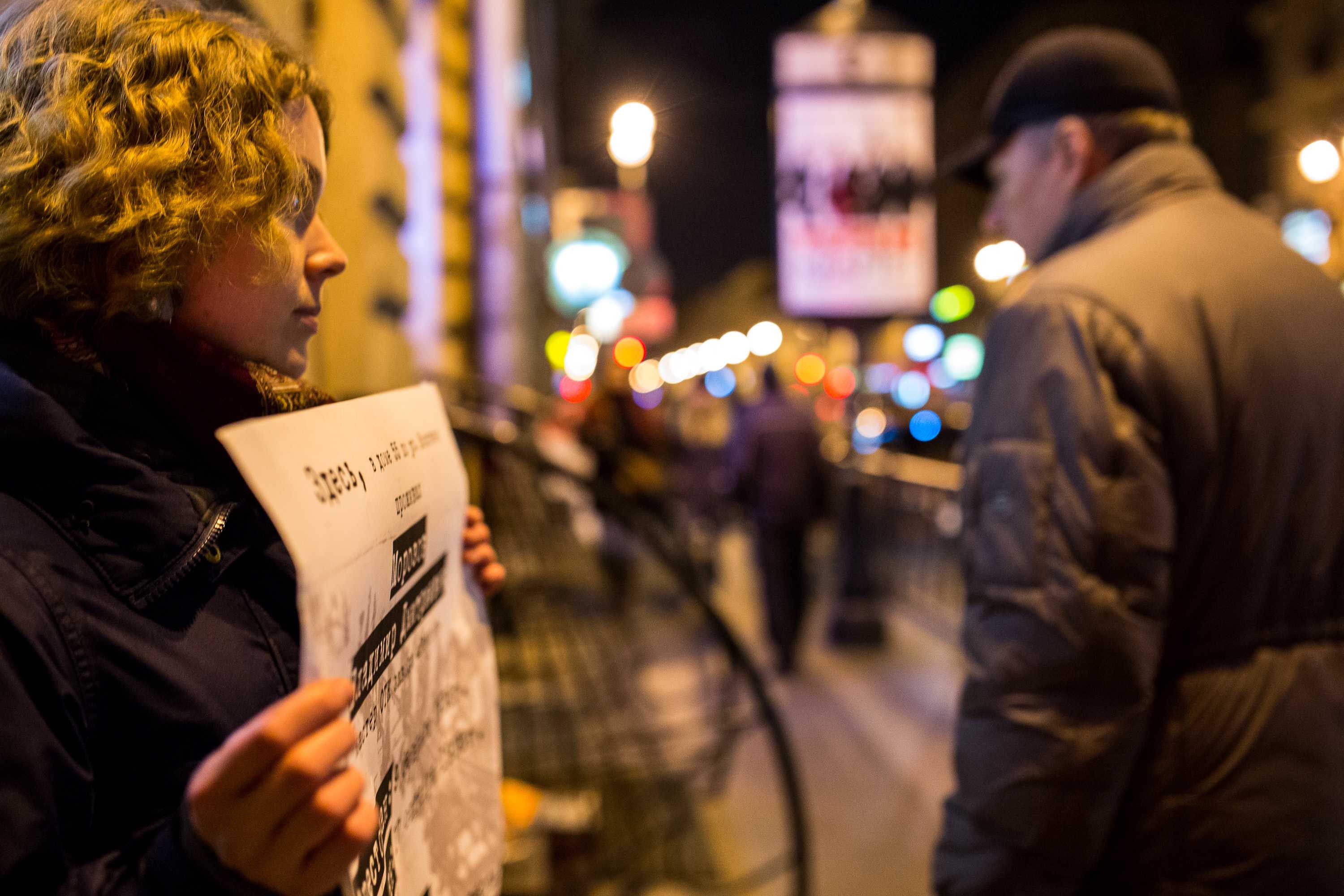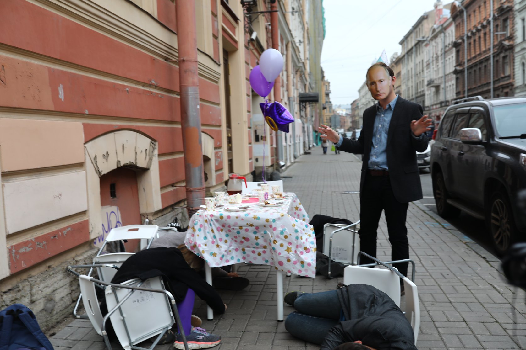 The political performance “Clanking Chains,” March 11, 2018, Petersburg. Photo by Tatyana Voltskaya. Courtesy of